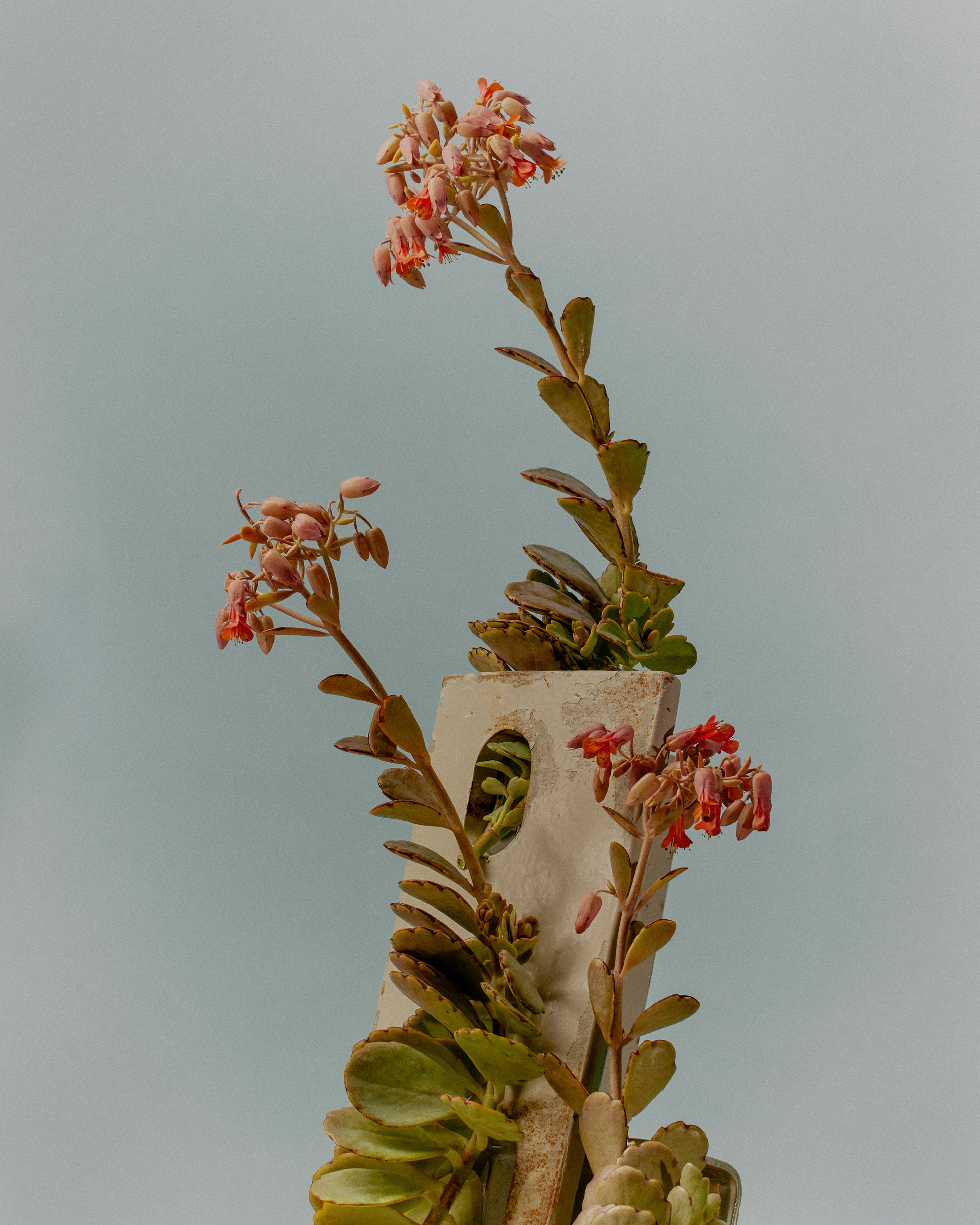 The use of found objects in this photographic series, representative of the precinct's building materials, underscores the intertwined relationship between humans and their creations. Just as these materials find new life within the precinct, ideas blossom and transform through the collective energy of its inhabitants. According to Christie, “The creation of the Still Life series involved planting the seed of an idea and cultivating an environment for the creative process to root, sprout and bloom… Each assemblage was built through a process of natural unfurling.”